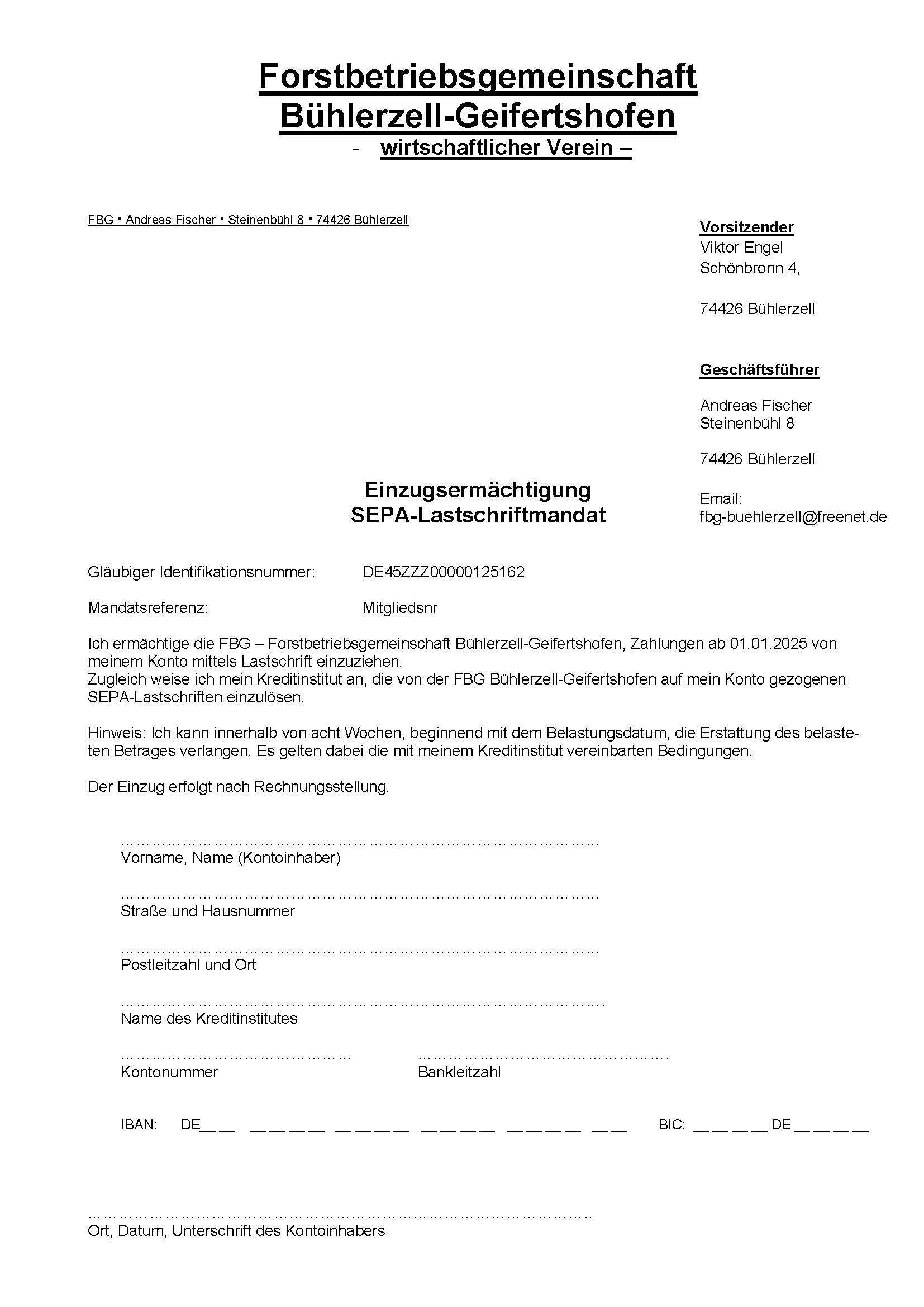 SEPA-Lastschriftmandat FBG Bühlerzell und Geifertshofen