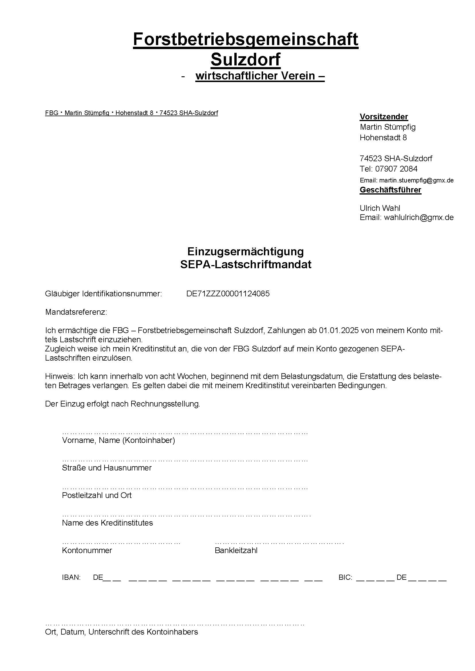 SEPA-Lastschriftmandat FBG Sulzdorf